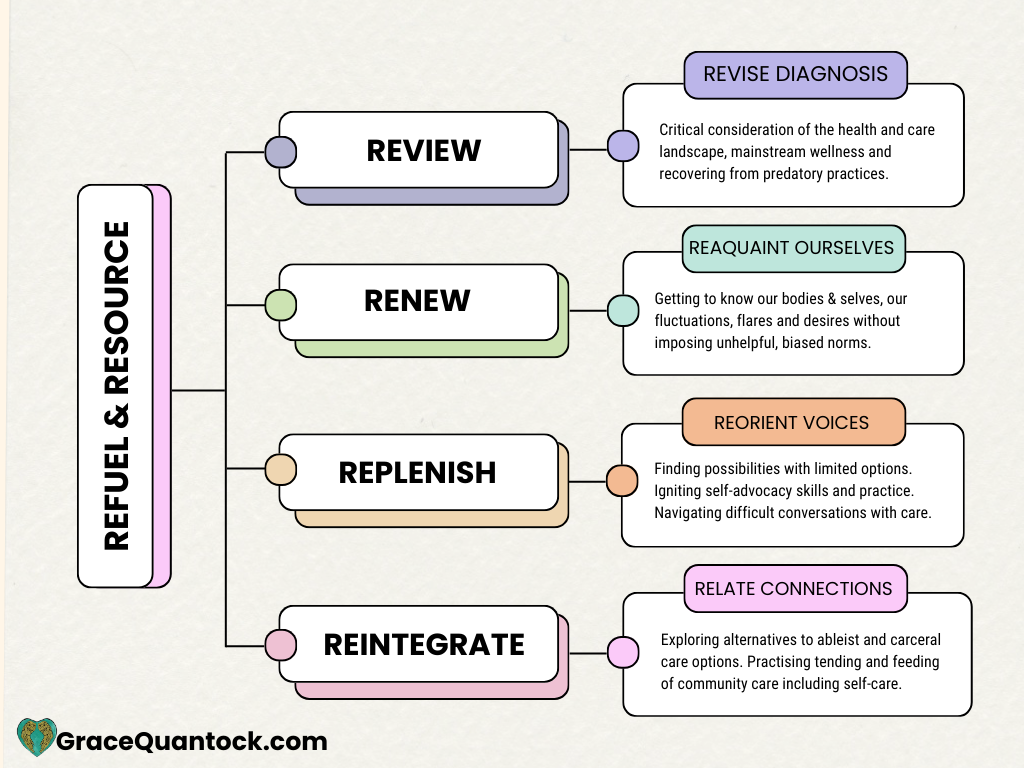Here, our experiences our centred, disabled, chronically ill, and neurodivergent bodies and minds are the default.